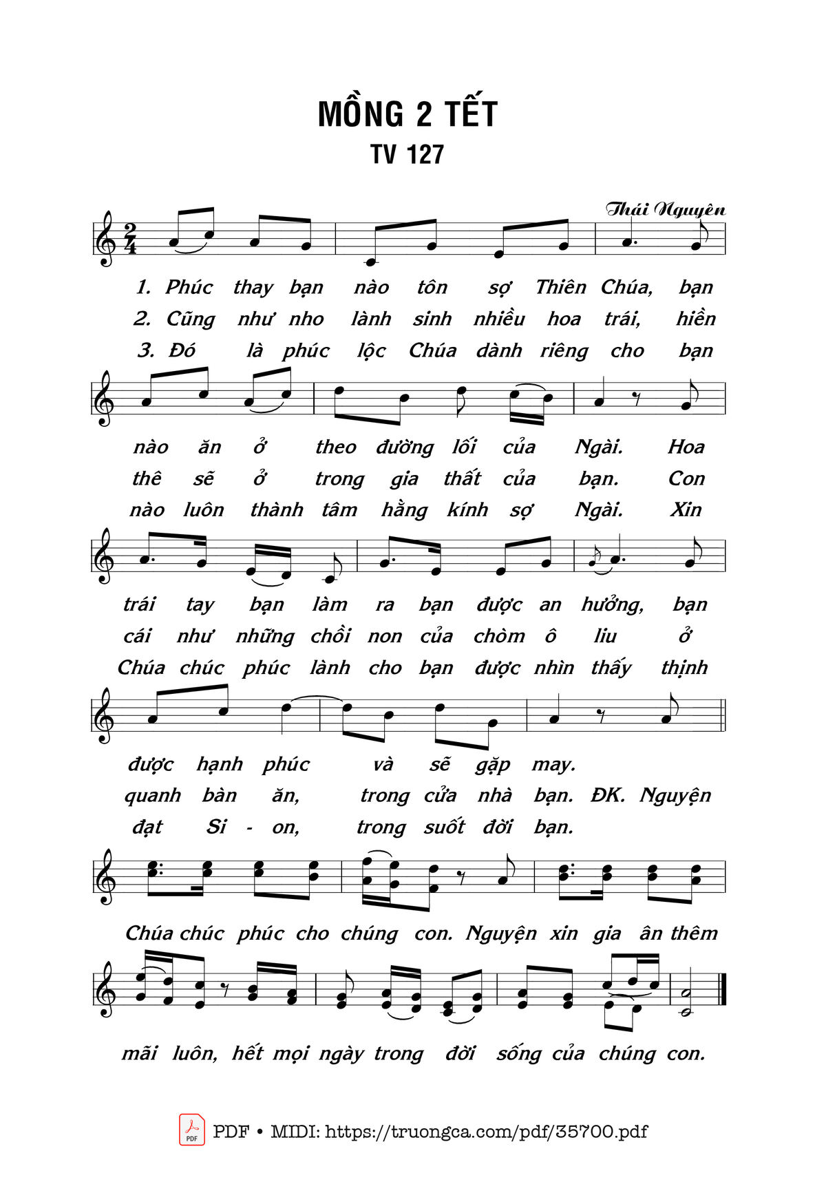 More similar sheets PDF Thánh Vịnh 127, Lễ Mùng 2 Tết: