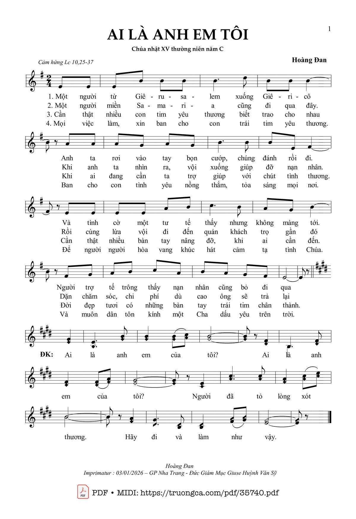 Sheet PDF with the same name Ai Là Anh Em Tôi: