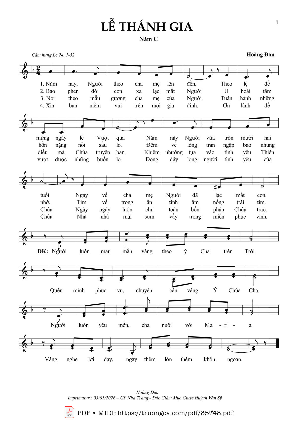 More similar sheets PDF Lễ Thánh Gia Năm C: