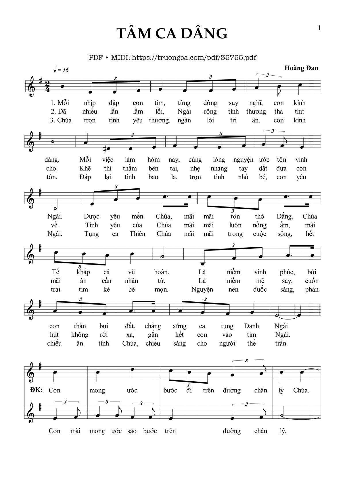 Transposition is the process of moving a song's melody and chords up or down in pitch by a constant interval. The direction of the transposition tool is indicated by a plus (+) sign for up and a minus (-) sign for down. Hover mouse over chords signs to see the chords chart of Tâm Ca Dâng song.