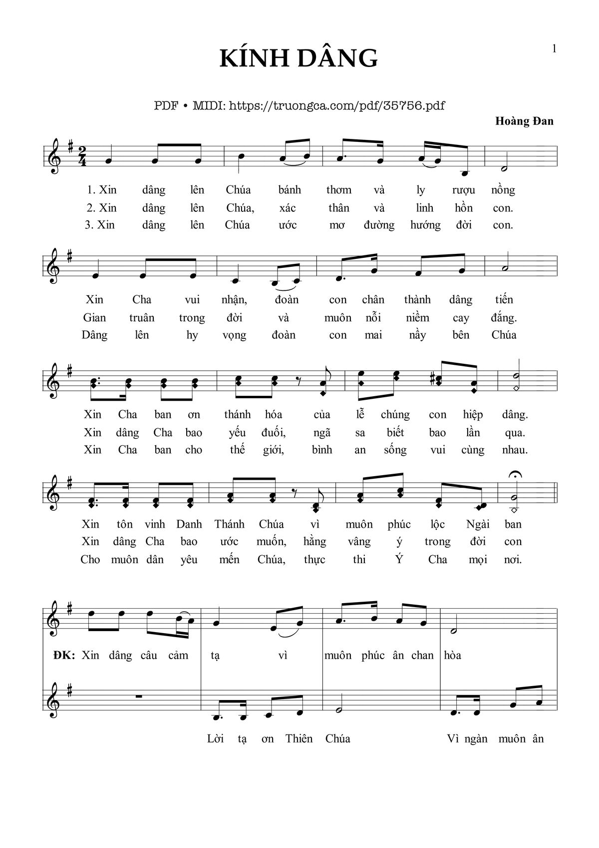 Sheet PDF with the same name Kính Dâng: