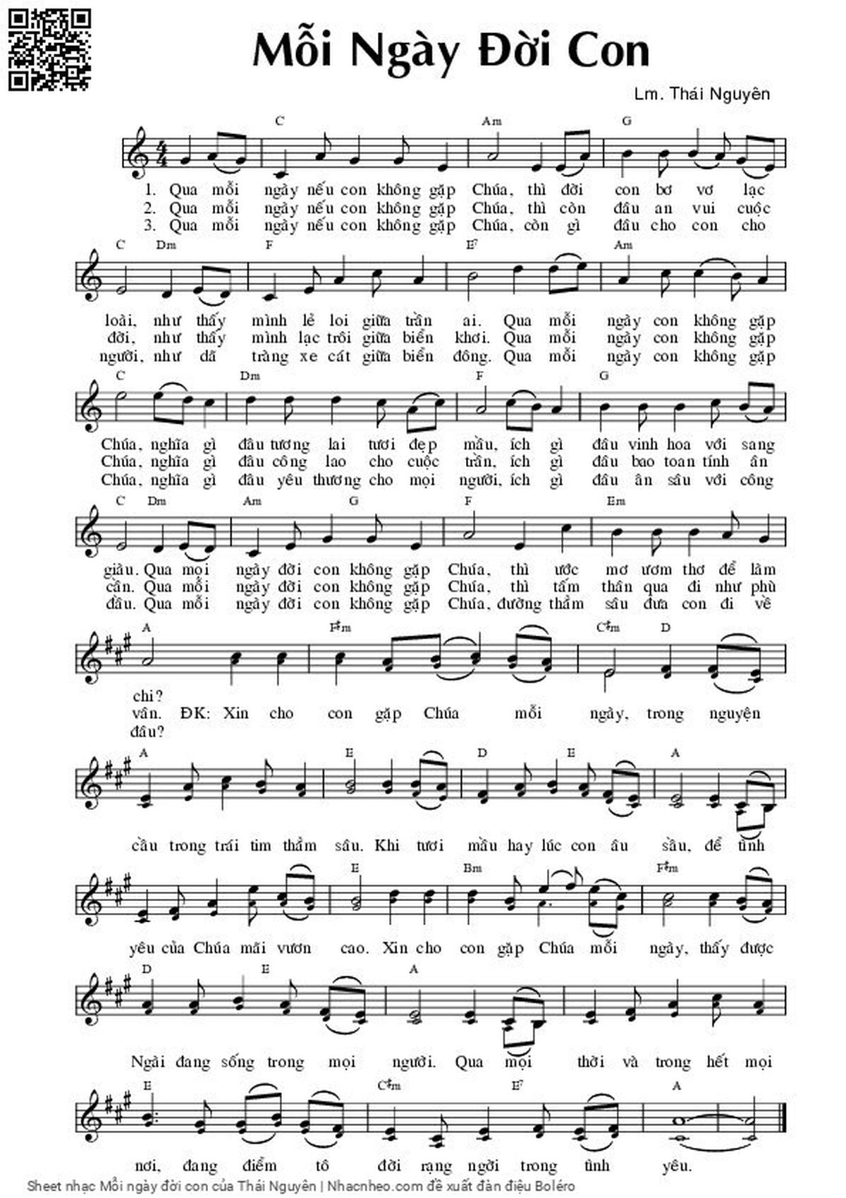 Lm. Thái Nguyên Qua mỗi ngày nếu con không gặp chúa [PDF] [Sheet] [Lyrics] [Mp4/Midi]