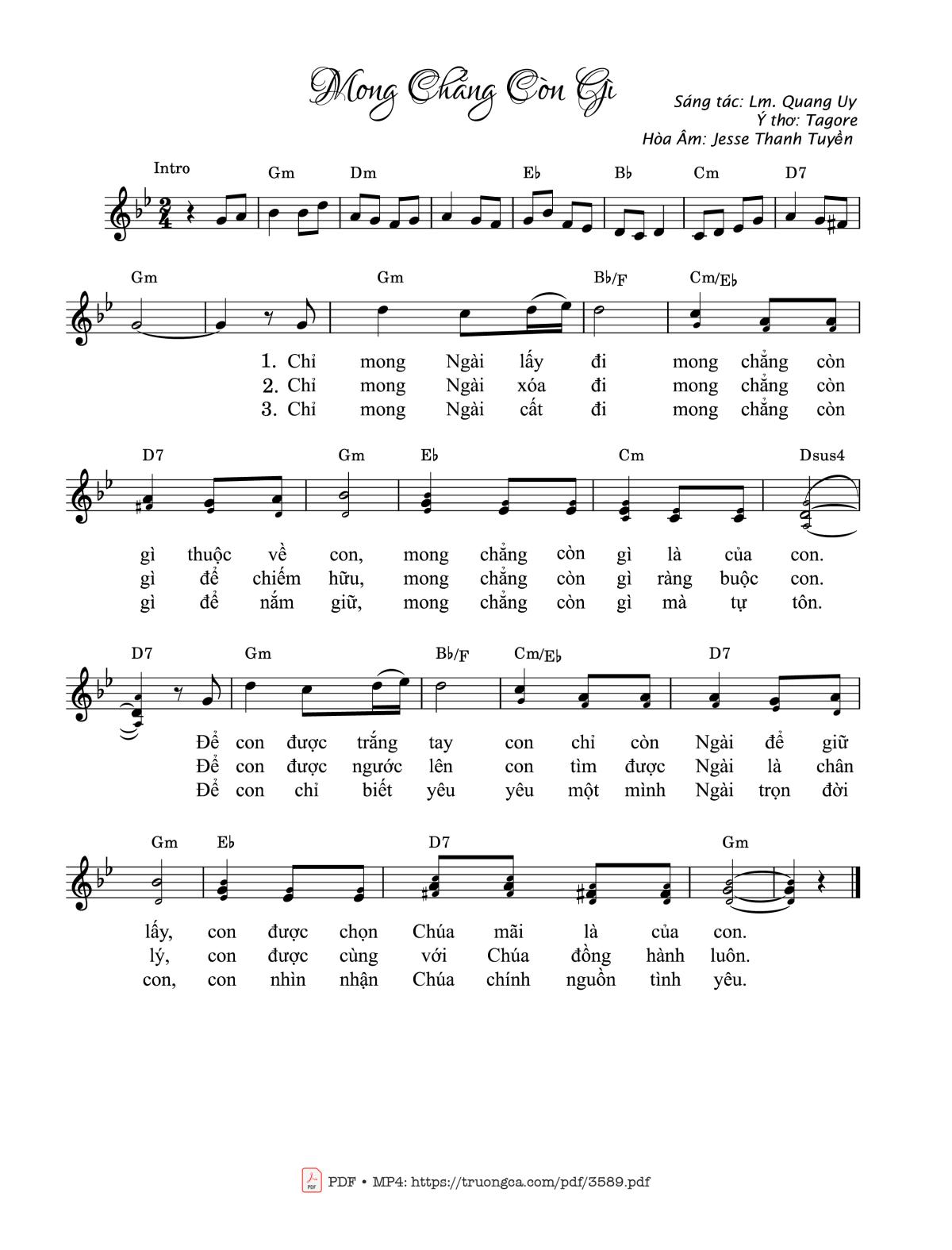 Lm. Quang Uy Chỉ mong Ngài lấy đi Mong chẳng còn gì thuộc về con [PDF] [Sheet] [Lyrics] [Mp4/Midi]