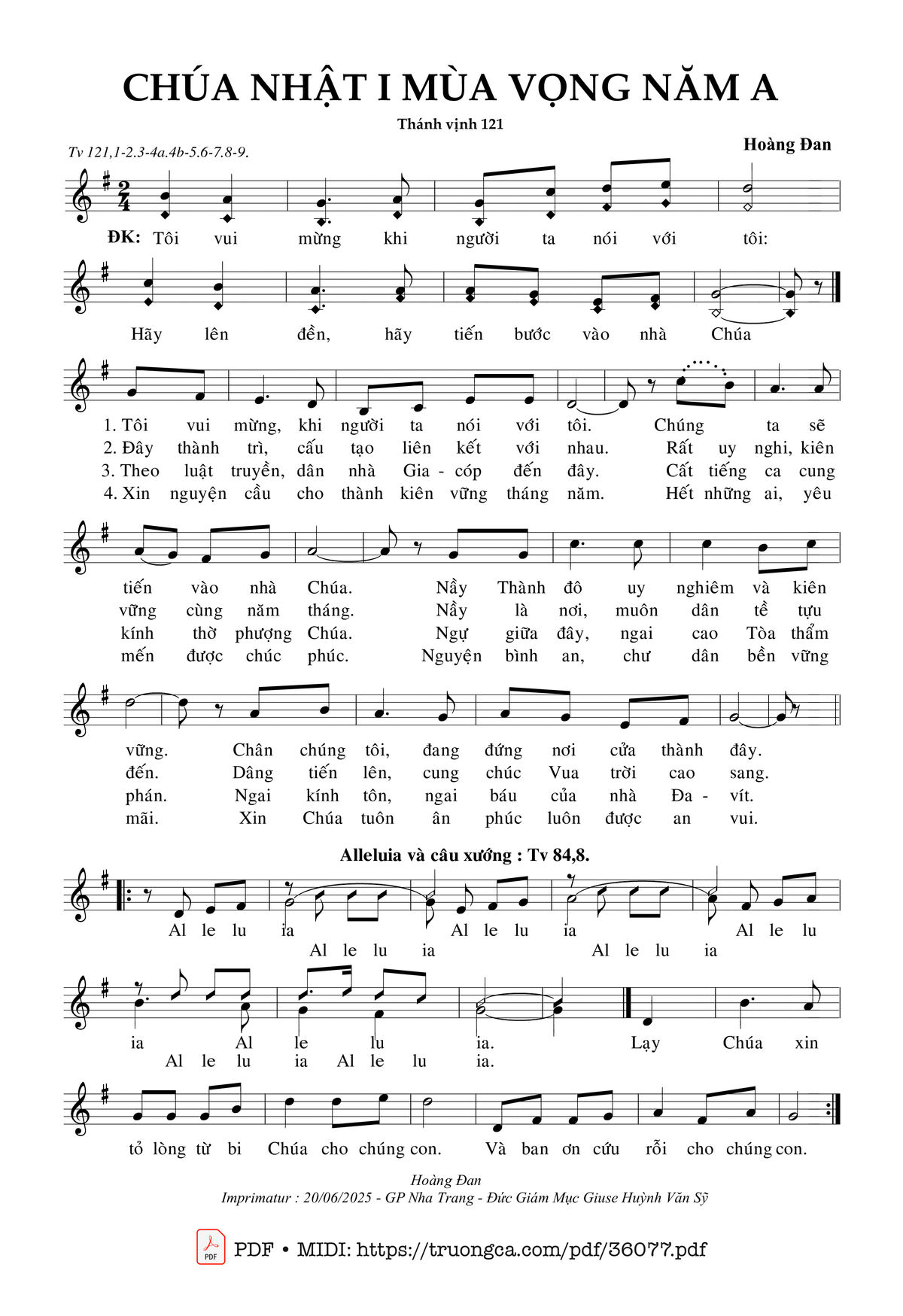 Sheet PDF with the same name Chúa Nhật 1 Mùa Vọng Năm A (Tv 121):