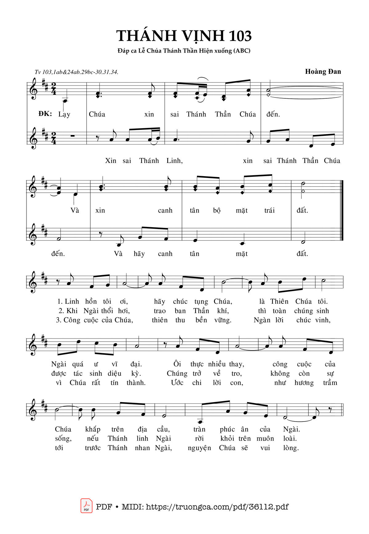 Sheet PDF with the same name Thánh Vịnh 103 (Đáp Ca Lễ Chúa Thánh Thần Hiện Xuống):