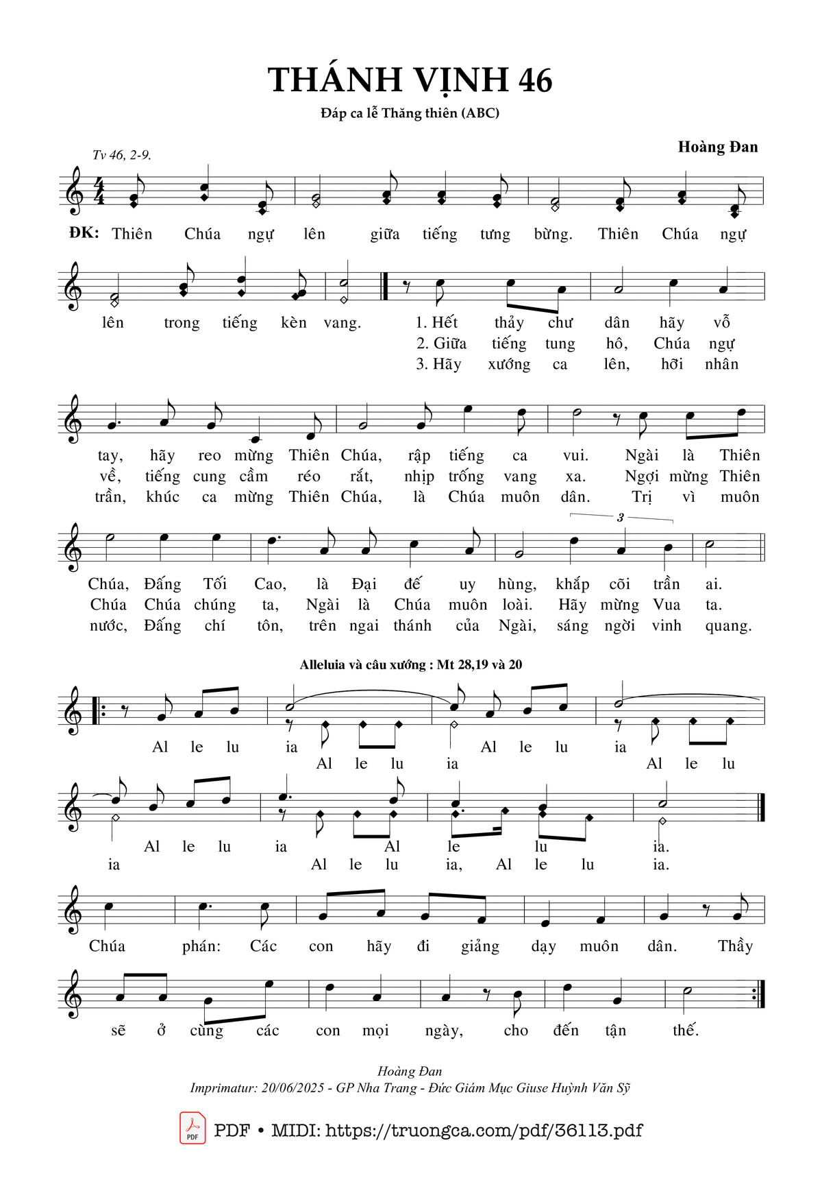 Sheet PDF with the same name Thánh Vịnh 46 (Đáp Ca Lễ Thăng Thiên Abc):