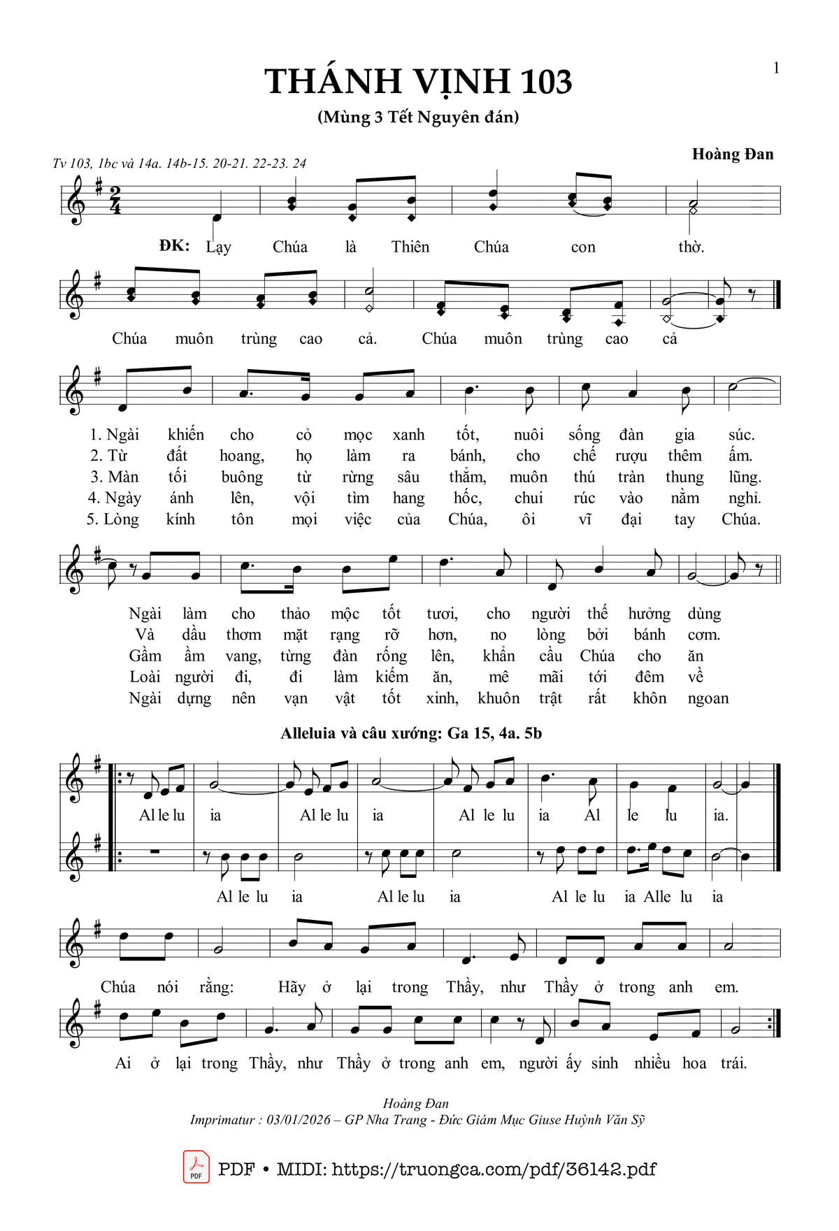 Sheet PDF with the same name Thánh Vịnh 103 (Lễ Mùng 3 Tết Nguyên Đán):