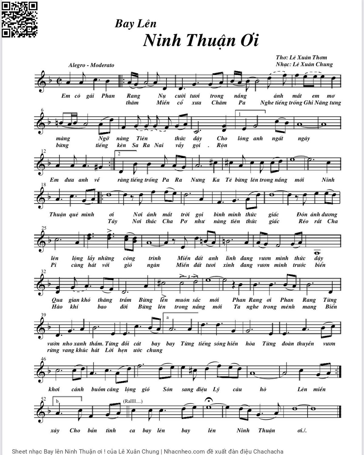 Lê Xuân Chung Em cô gái Phan Rang nụ cười tươi trong nắng [PDF] [Sheet] [Lyrics] [Mp4/Midi]