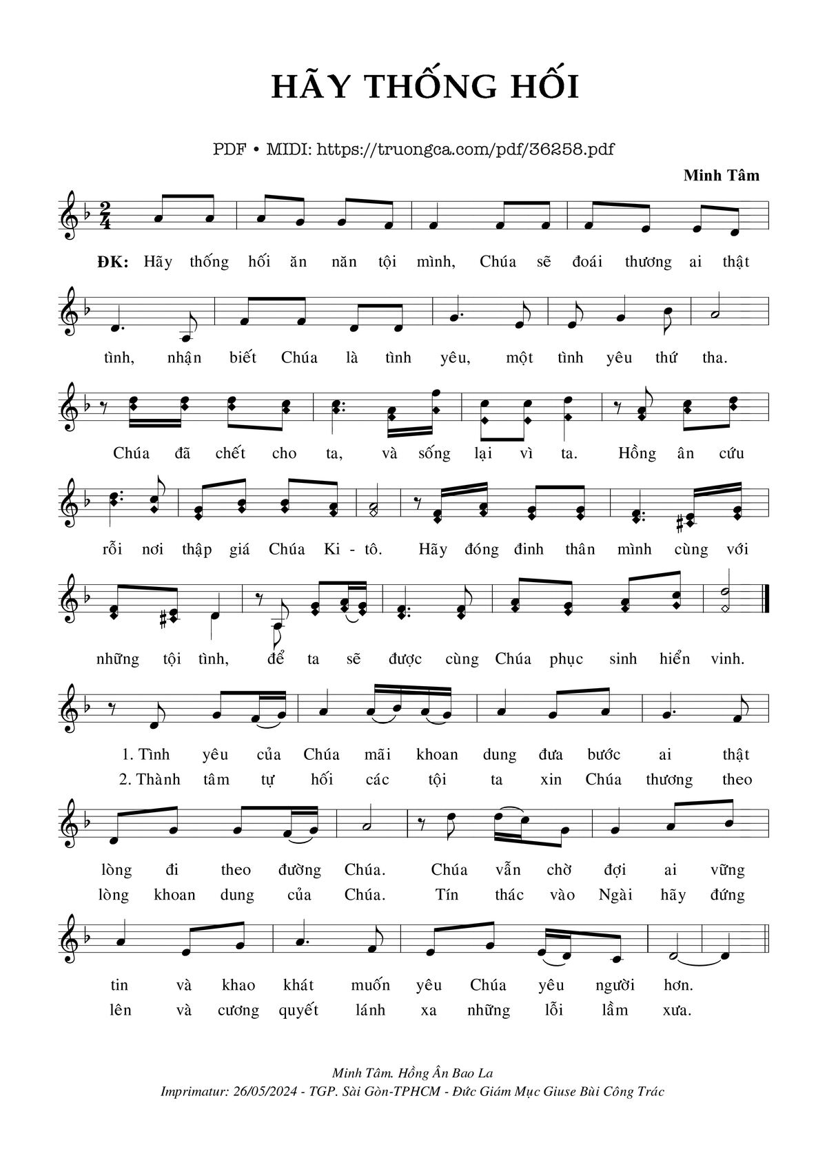 The first sentence: Hãy thống hối ăn năn tội mình Chúa sẽ đoái thương ai thật tình