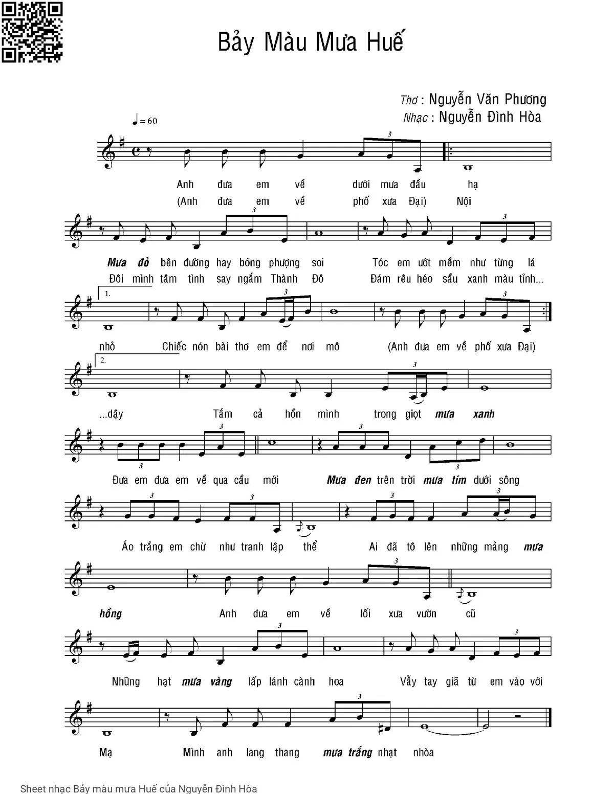 Nguyễn Đình Hòa Anh đưa em về dưới mưa đầu hạ Mưa đỏ bên đường hay bóng phượng soi [PDF] [Sheet] [Lyrics] [Mp4/Midi]