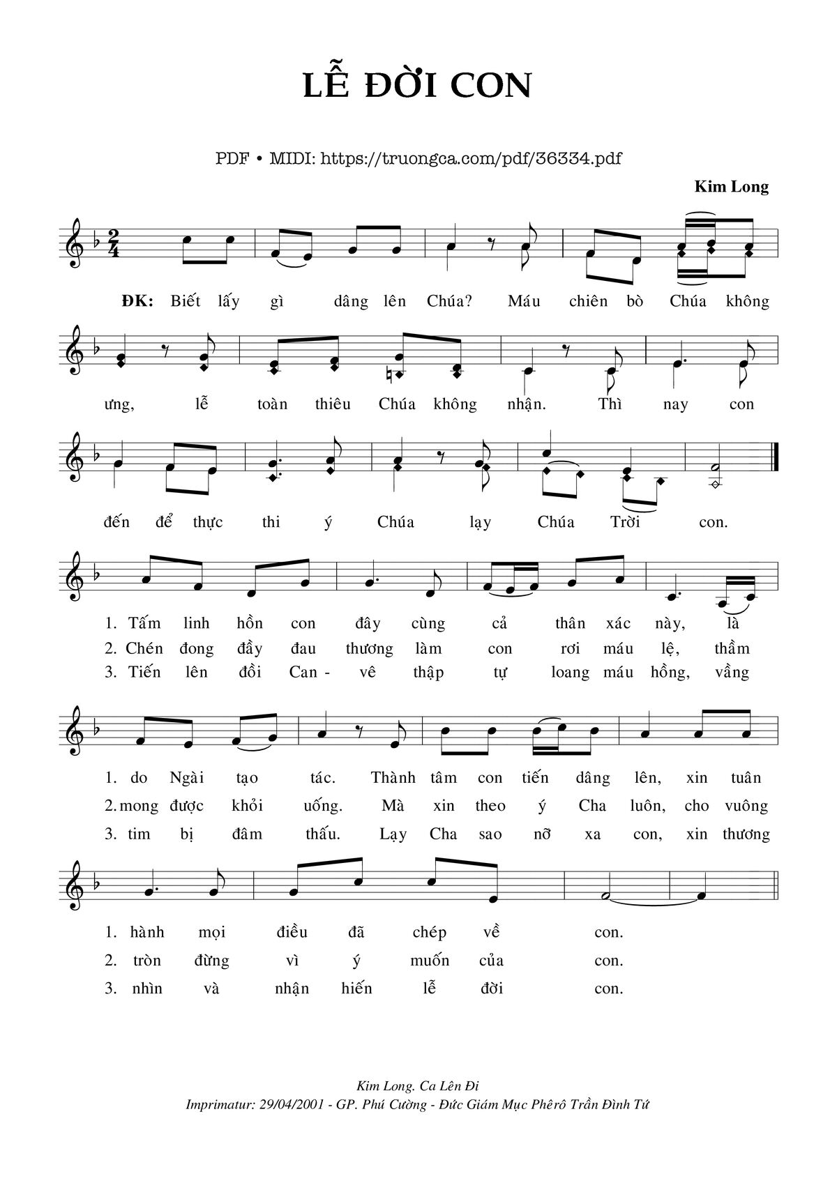 Dâng Lễ – Imprimatur. Gp. Phú Cường: 29.04.2001