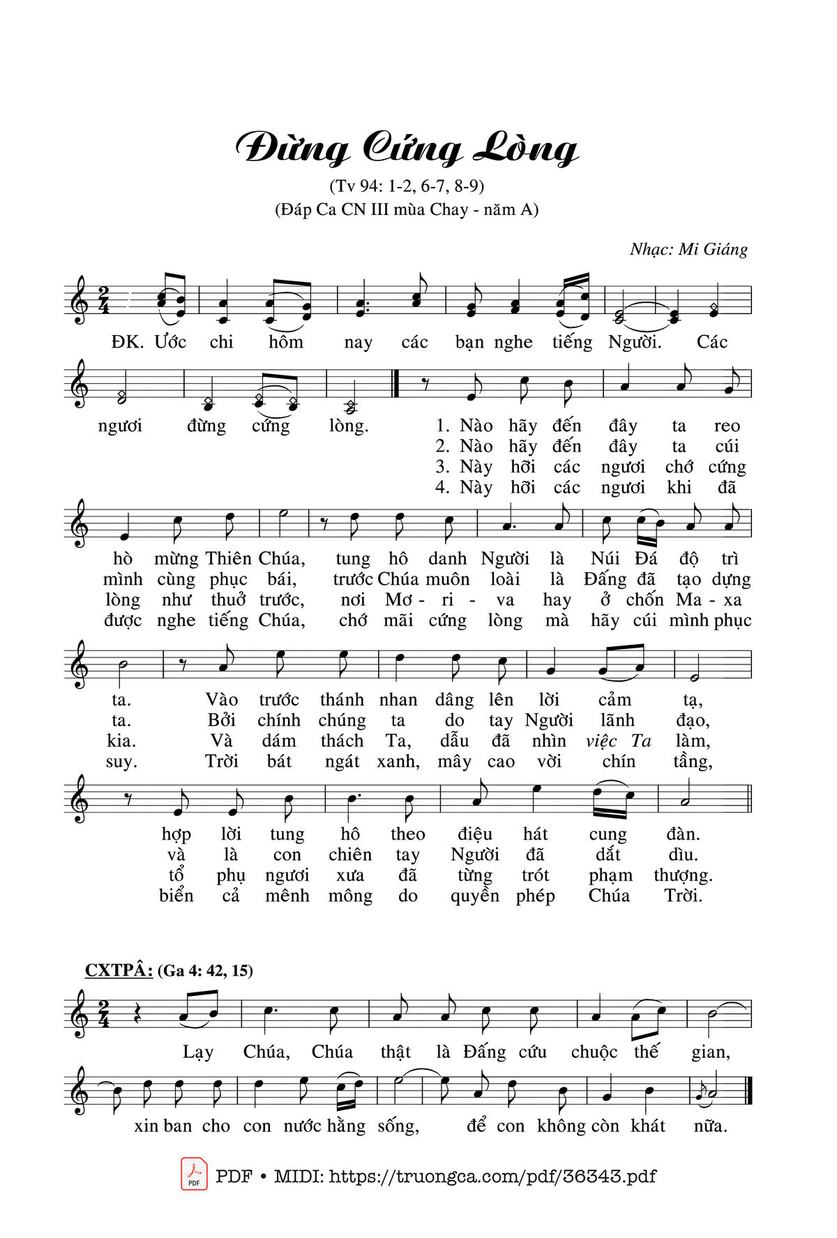 Sheet PDF with the same name Thánh Vịnh 94, Đừng Cứng Lòng: