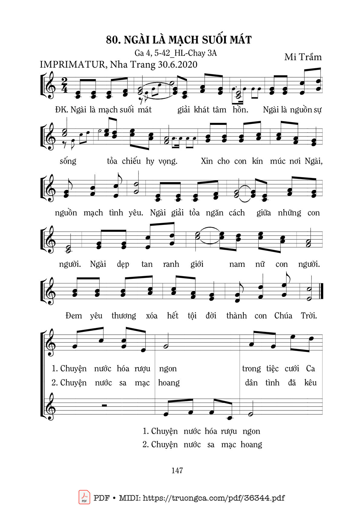 Mi Trầm Ngài là mạch suối mát giải khát tâm hồn [PDF] [Sheet] [Lyrics] [Mp4/Midi]