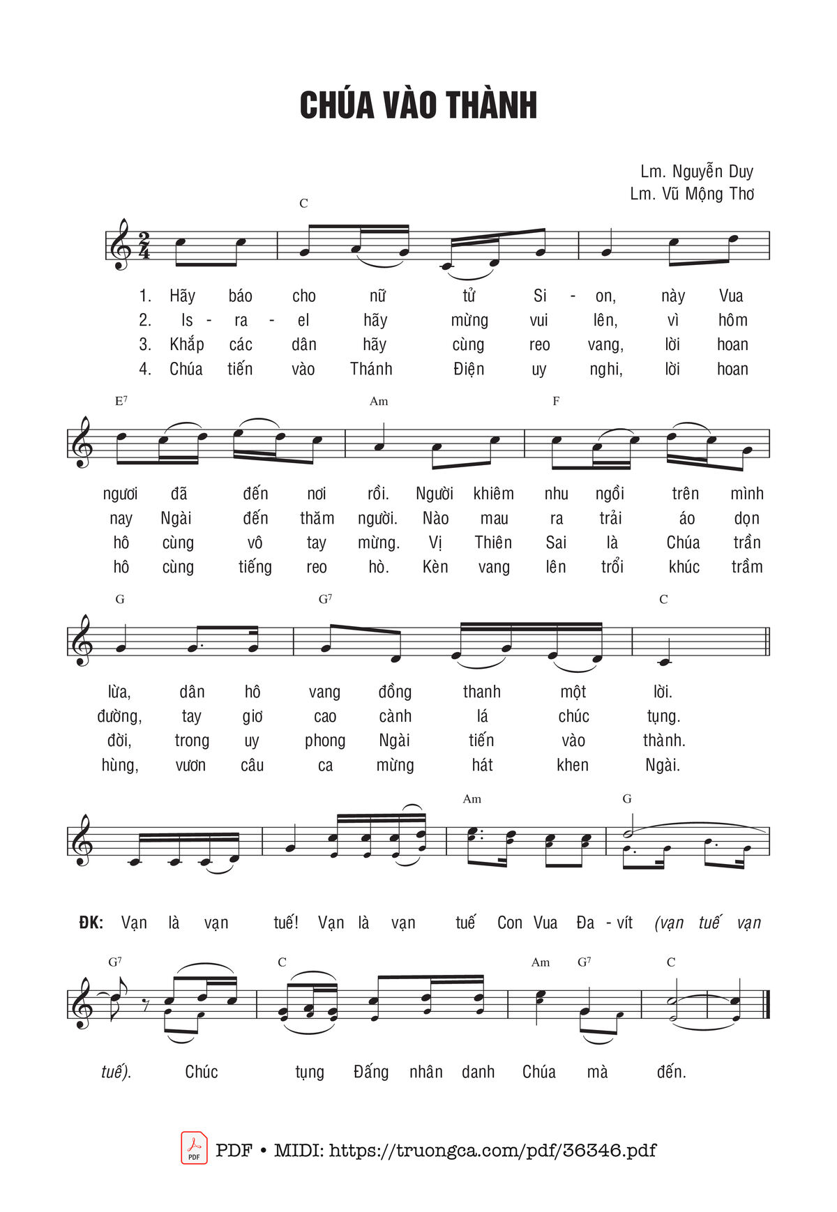 Sheet PDF with the same name Chúa Vào Thành: