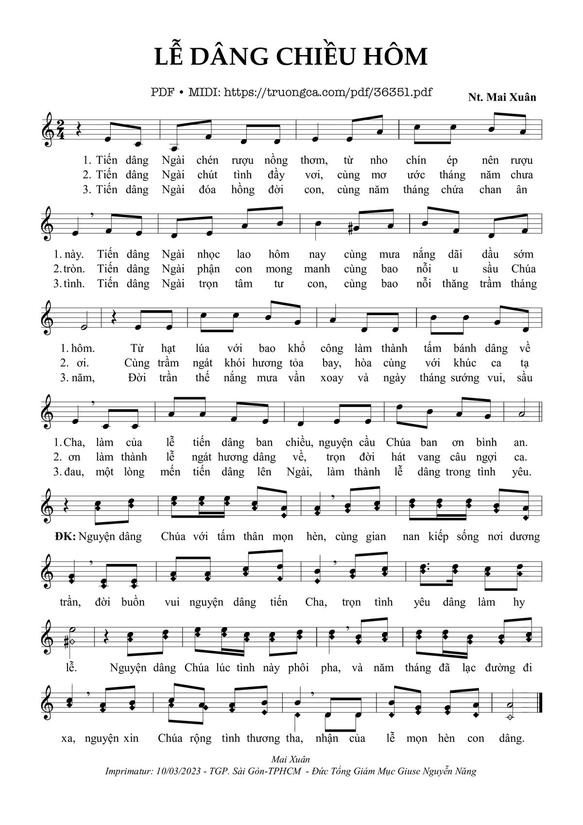 Dâng Lễ – Imprimatur. TGp. Sài Gòn: 10.03.2023.