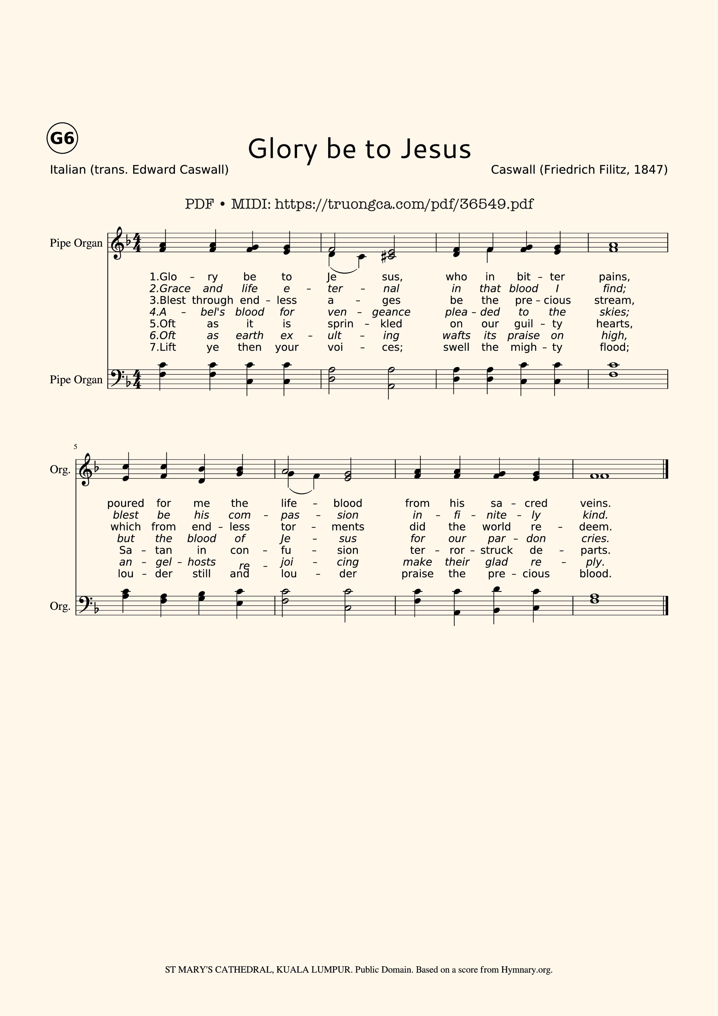 Download and print in PDF or MIDI free sheet music for Glory be to Jesus arranged by [email protected] for Organ