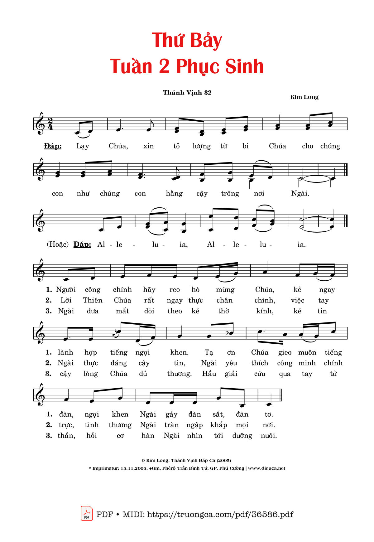 Category 🌾 Nhạc Thánh Ca, 🌾 Thánh Vịnh - Đáp Ca, 🌾 Thánh Vịnh 32, 🌾 Thánh ca Imprimatur, Thứ Bảy, Tuần II Phục Sinh