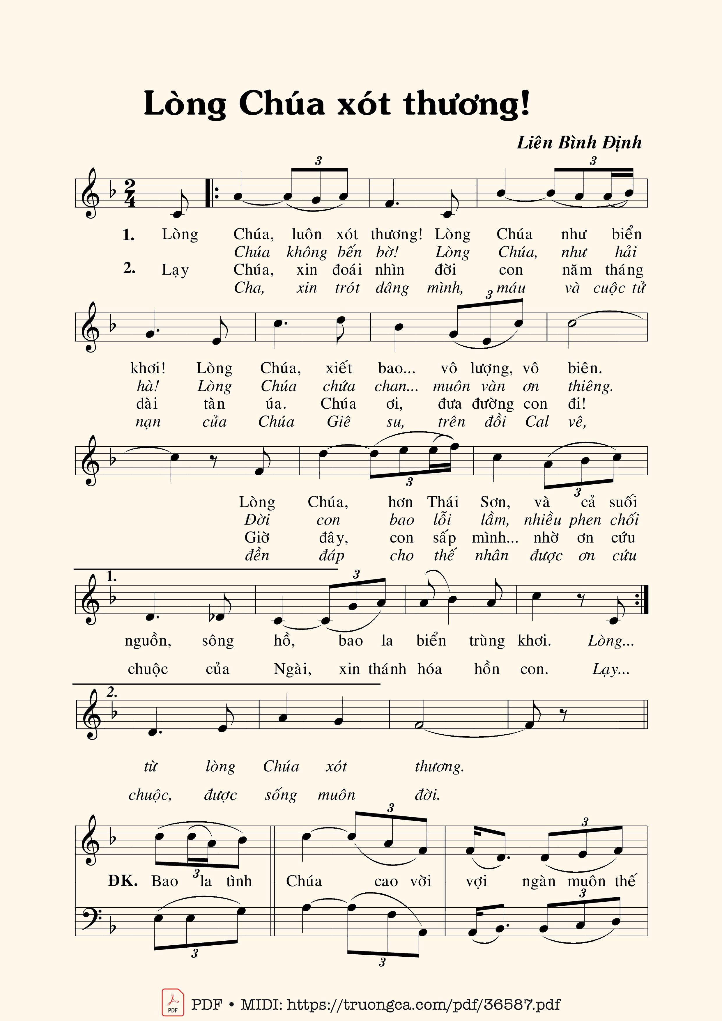 Liên Bình Định Lòng Chúa, luôn xót thương! Lòng Chúa như biến khơi. [PDF] [Sheet] [Lyrics] [Mp4/Midi]