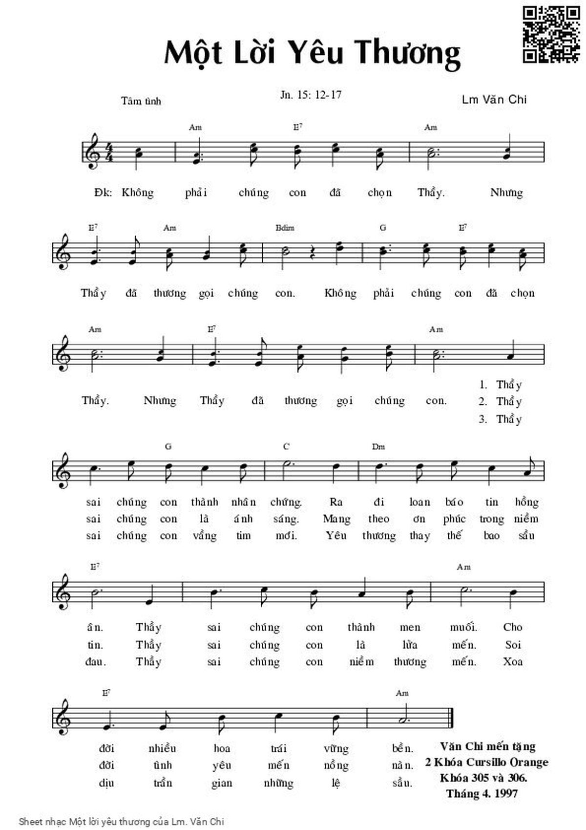 Sheet PDF with the same name Một lời yêu thương:
