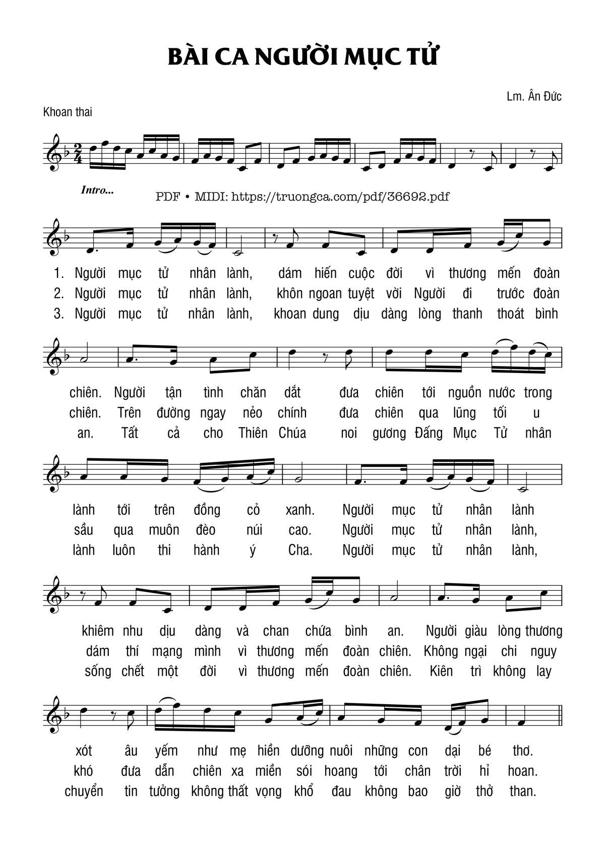Ân Đức Người mục tử nhân lành dám hiến cuộc đời vì thương mến đoàn chiên [PDF] [Sheet] [Lyrics] [Mp4/Midi]