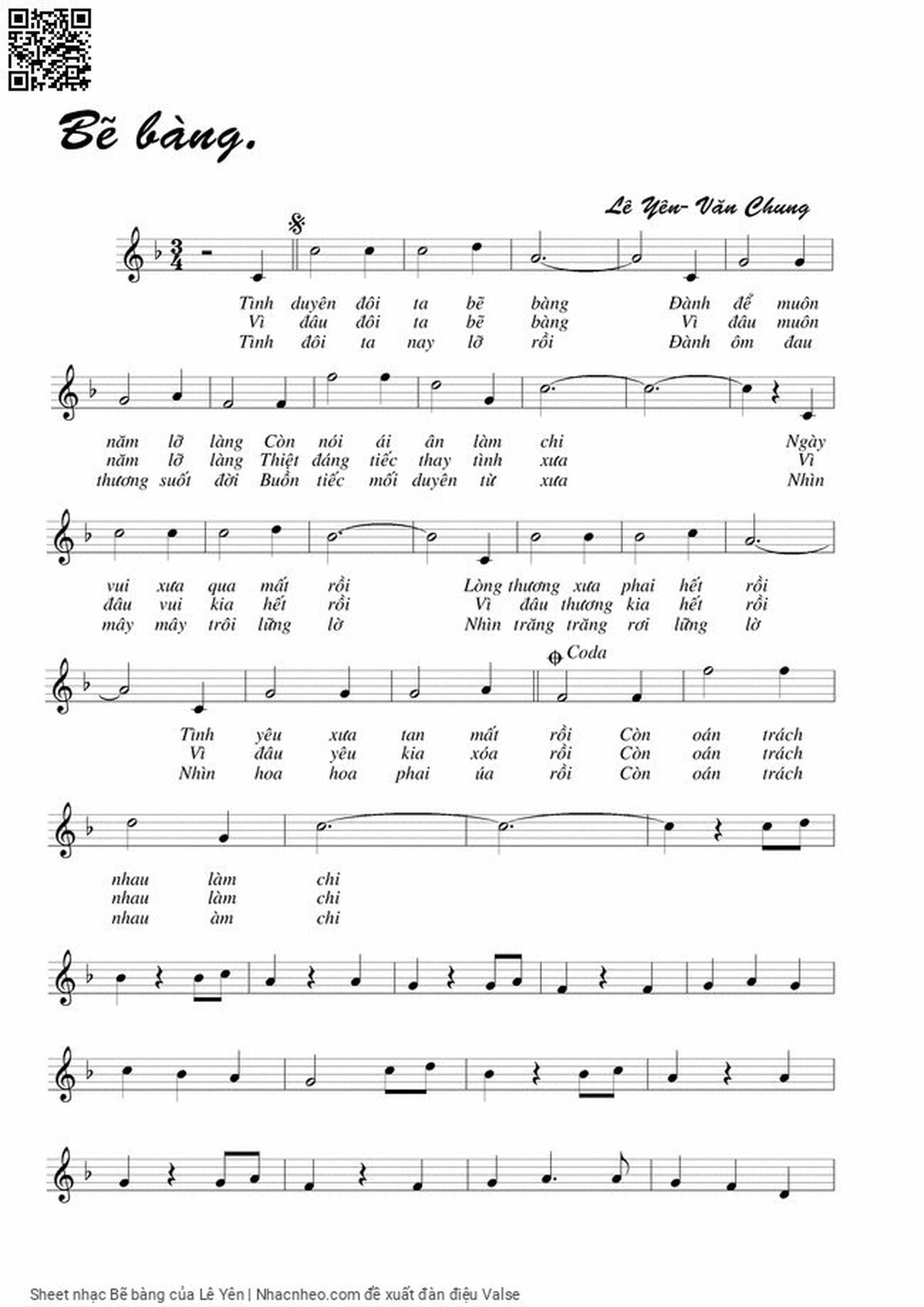 Transposition is the process of moving a song's melody and chords up or down in pitch by a constant interval. The direction of the transposition tool is indicated by a plus (+) sign for up and a minus (-) sign for down. Hover mouse over chords signs to see the chords chart of Bẽ bàng song.
