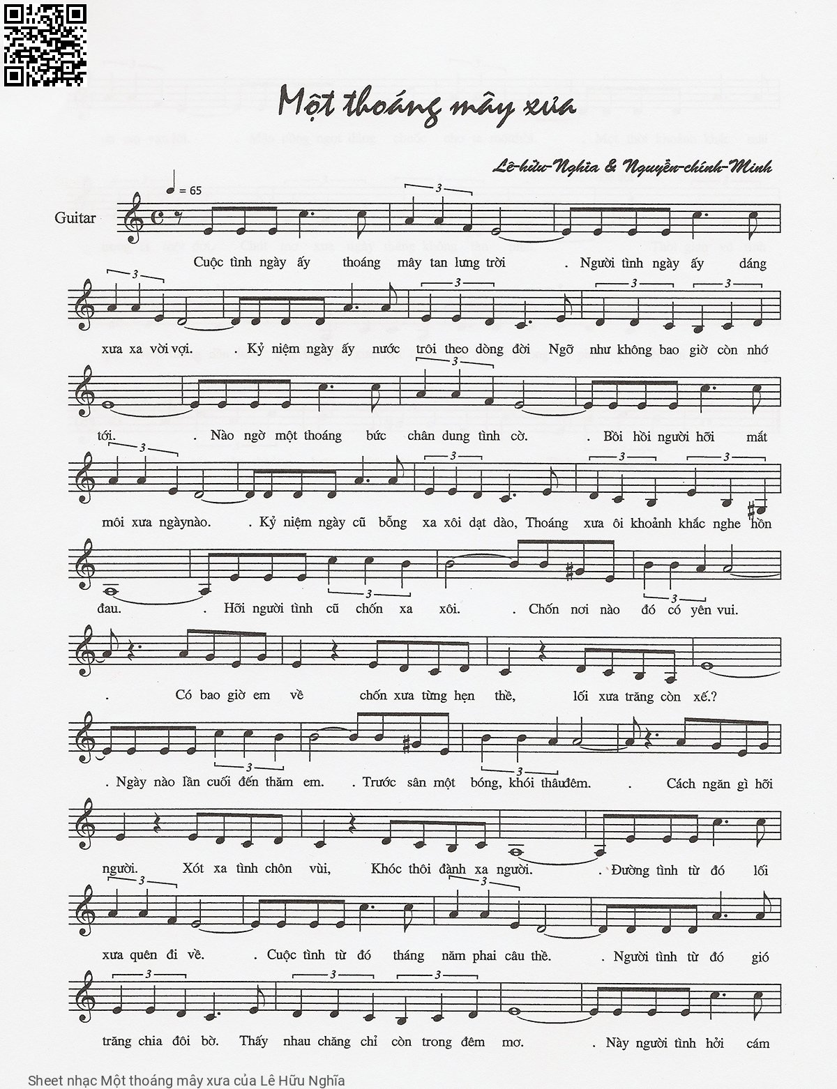 Lê Hữu Nghĩa Cuộc tình ngày ấy thoáng mây tan lưng trời [PDF] [Sheet] [Lyrics] [Mp4/Midi]