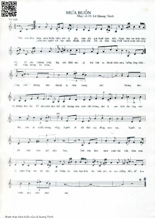 Lê Quang Thịnh Trời còn làm mưa mưa buồn ướt đôi vai gầy [PDF] [Sheet] [Lyrics] [Mp4/Midi]