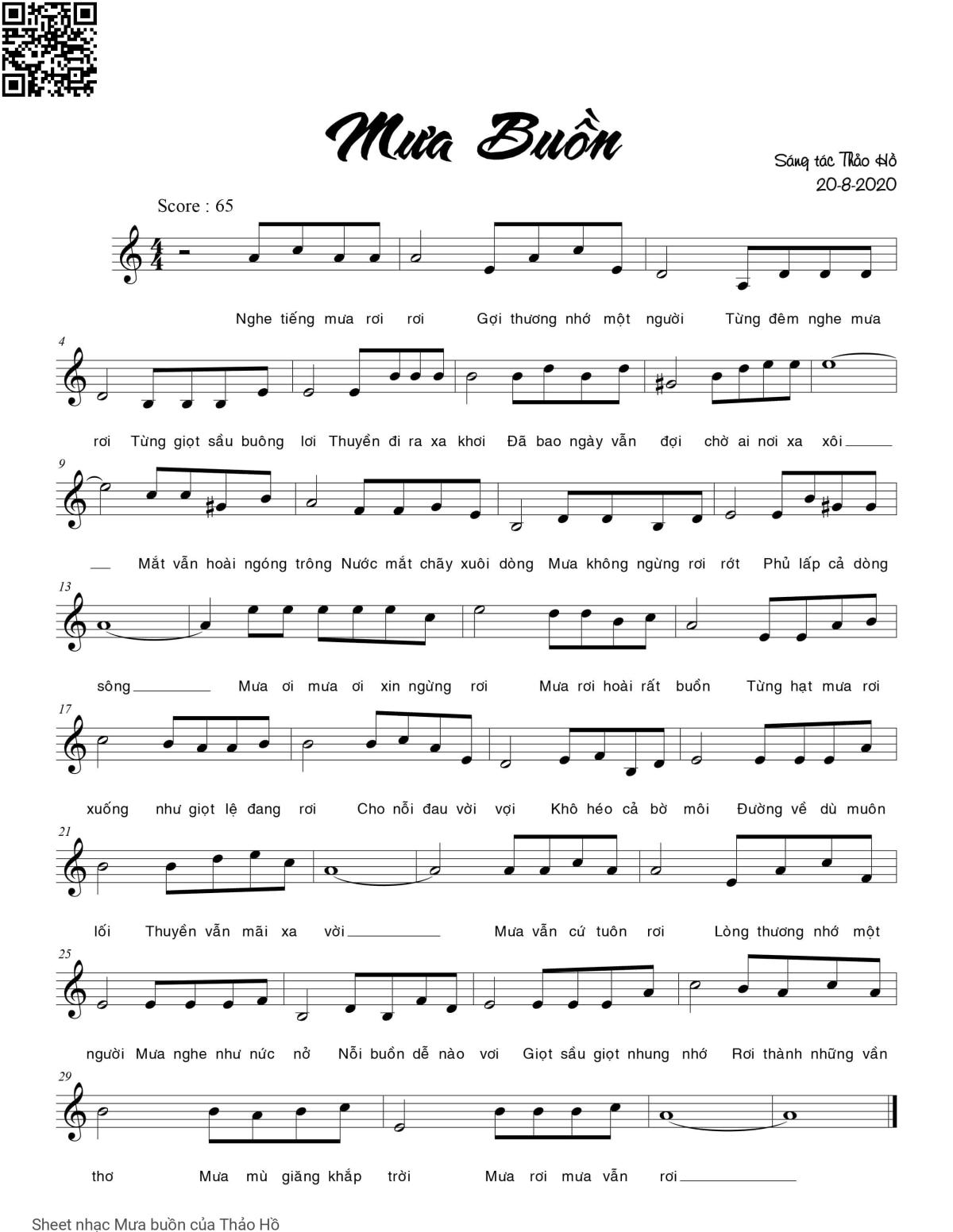 Thảo Hồ Nghe tiếng mưa rơi rơi gợi thương nhớ một người [PDF] [Sheet] [Lyrics] [Mp4/Midi]