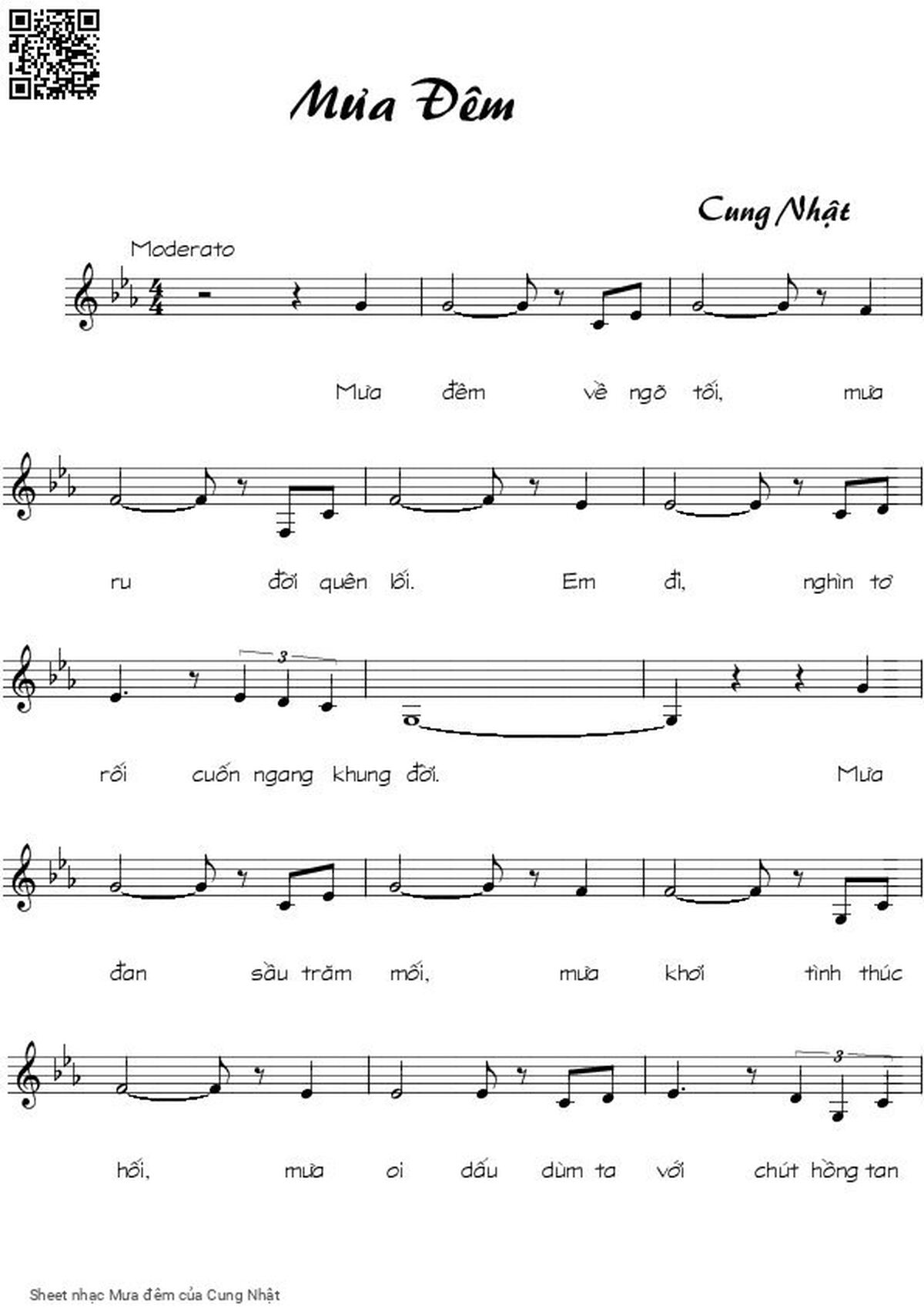The first sentence: Mưa đêm về ngõ tối Mưa ru đời quên lối
