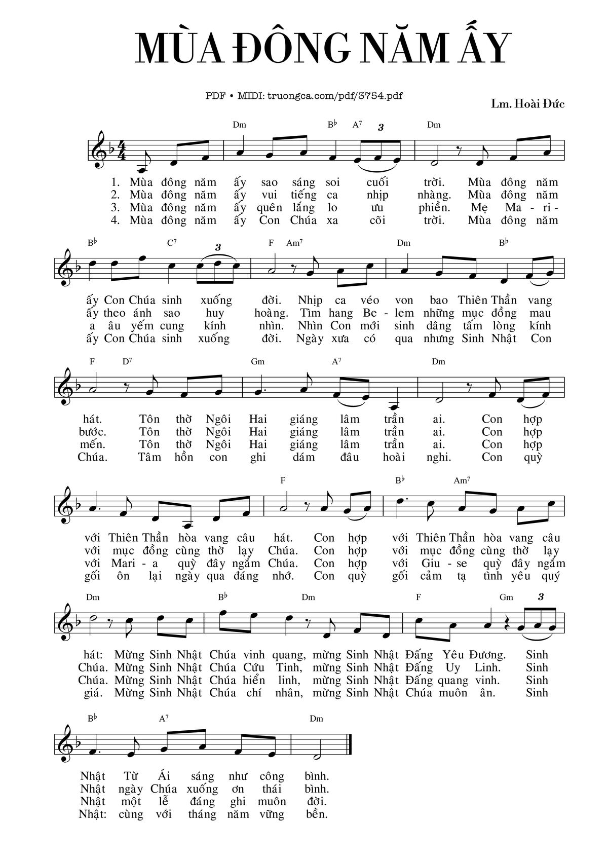 Hoài Đức Mùa đông năm ấy sao sáng soi cuối trời [PDF] [Sheet] [Lyrics] [Mp4/Midi]