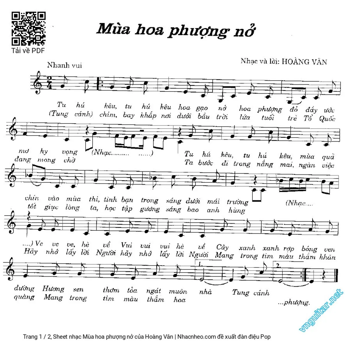 Hoàng Vân Tu hú kêu tu hú kêu Hoa gạo nở hoa phượng đỏ [PDF] [Sheet] [Lyrics] [Mp4/Midi]