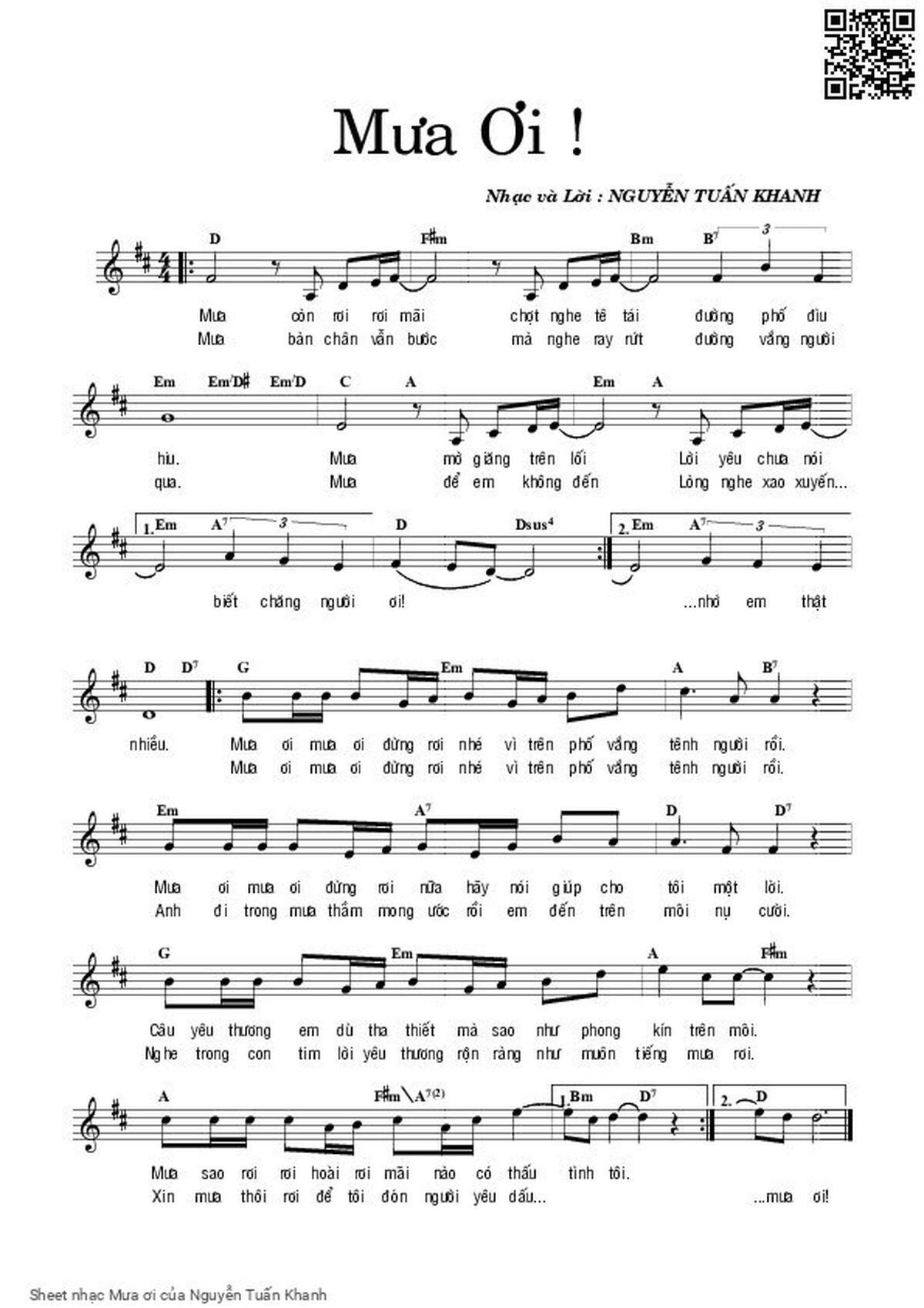 Nguyễn Tuấn Khanh Mưa còn rơi rơi mãi Chợt nghe tê tái đường phố đìu hiu [PDF] [Sheet] [Lyrics] [Mp4/Midi]
