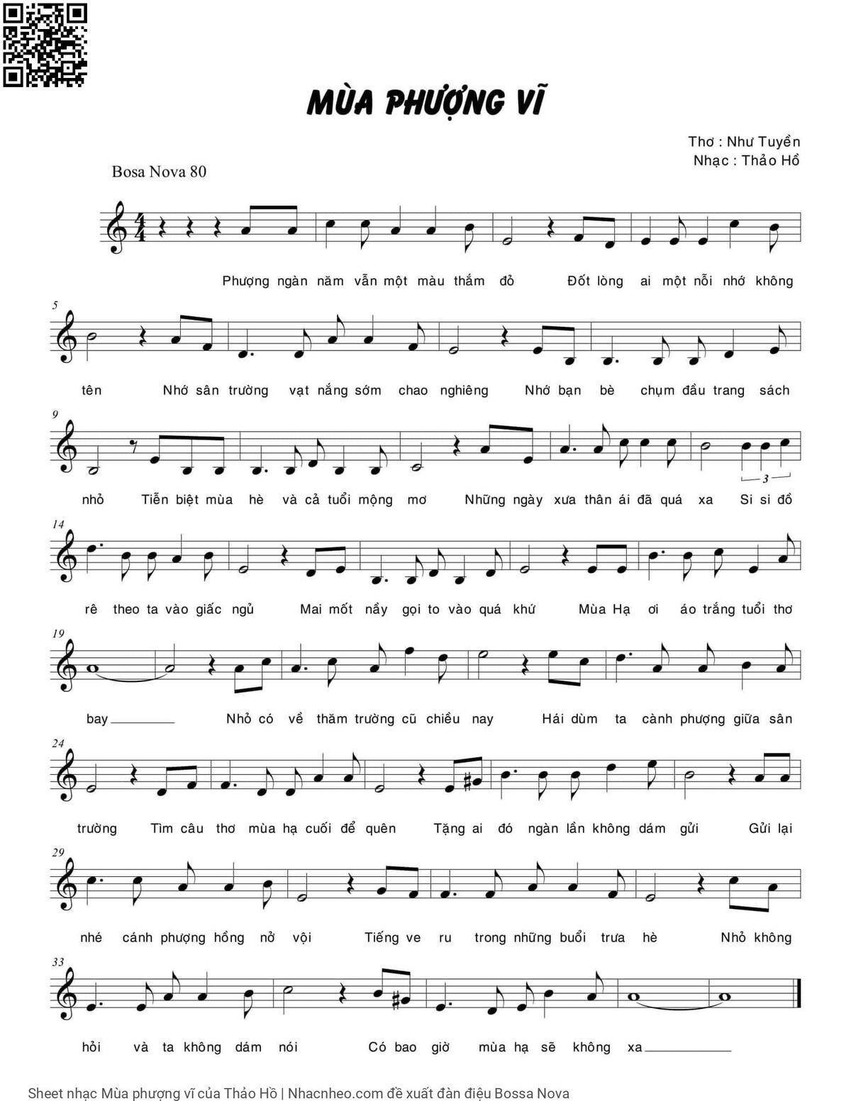 Thảo Hồ Phượng ngàn năm vẫn một màu thắm đỏ [PDF] [Sheet] [Lyrics] [Mp4/Midi]
