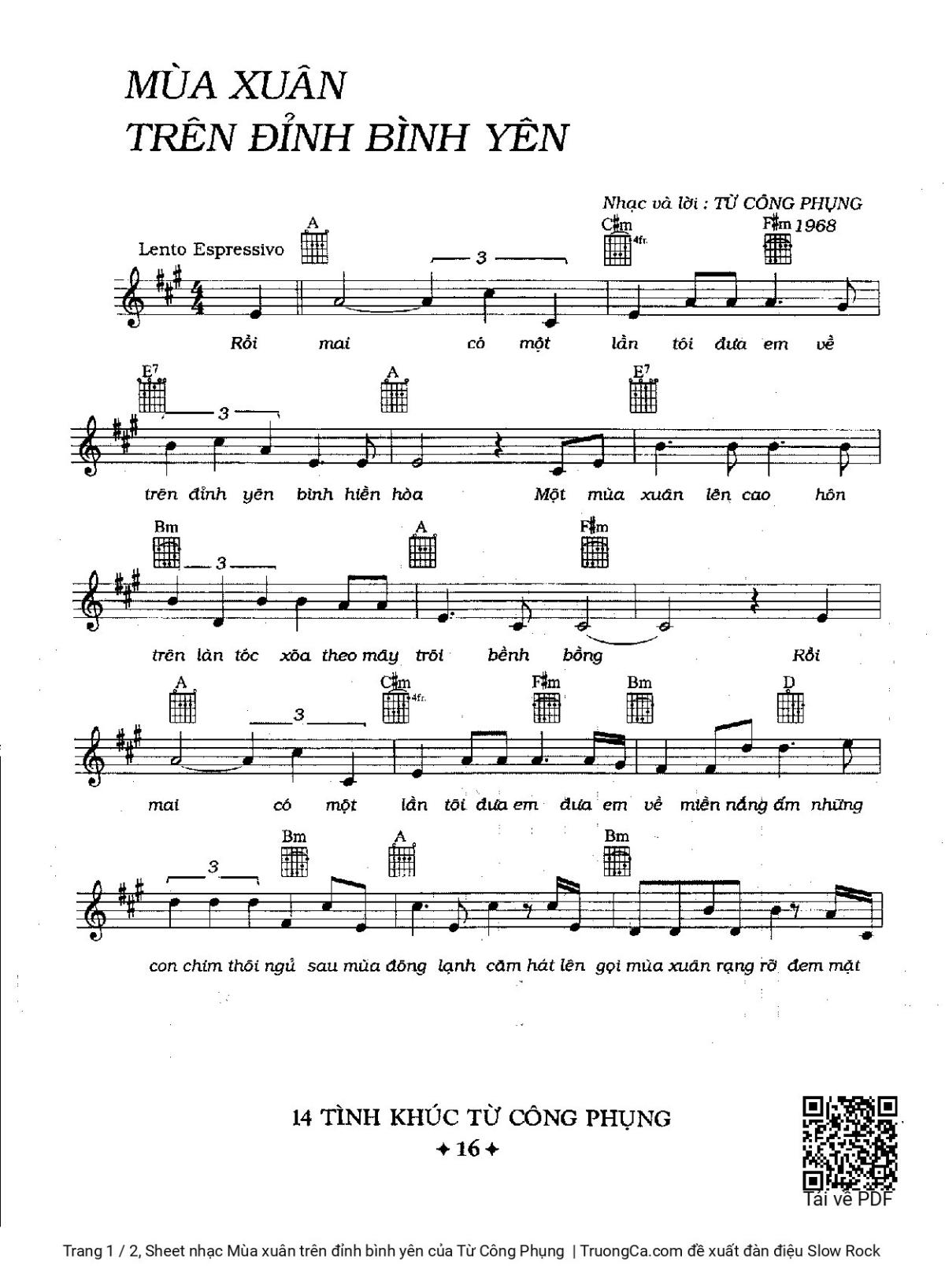 Từ Công Phụng Rồi mai có một lần tôi đưa em Về trên đỉnh yên bình hiền hòa [PDF] [Sheet] [Lyrics] [Mp4/Midi]