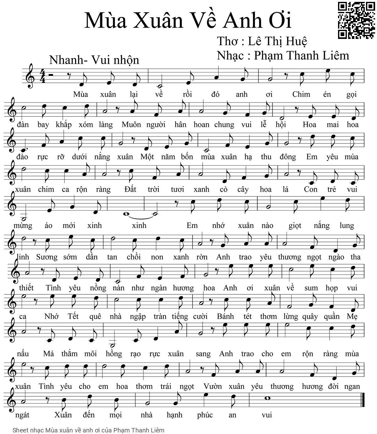 Phạm Thanh Liêm Mùa xuân lại về rồi đó anh ơi Chim én gọi đàn bay khắp xóm làng [PDF] [Sheet] [Lyrics] [Mp4/Midi]