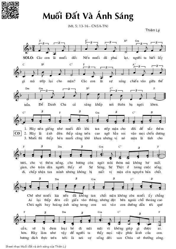 Thiên Lý Các con là muối đất Nếu muối đã phai lạt [PDF] [Sheet] [Lyrics] [Mp4/Midi]