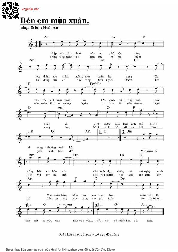 The Videos/audios Bên em mùa xuân by Hoài An were embed from Youtube, Musescore or the other 3rd links. Videos are subject to 3rd's copyright control and may be removed by YouTube's copyright rules and 3rd's policies or maybe included advertisements. If you cannot access to these songs, this mean that have been removed.