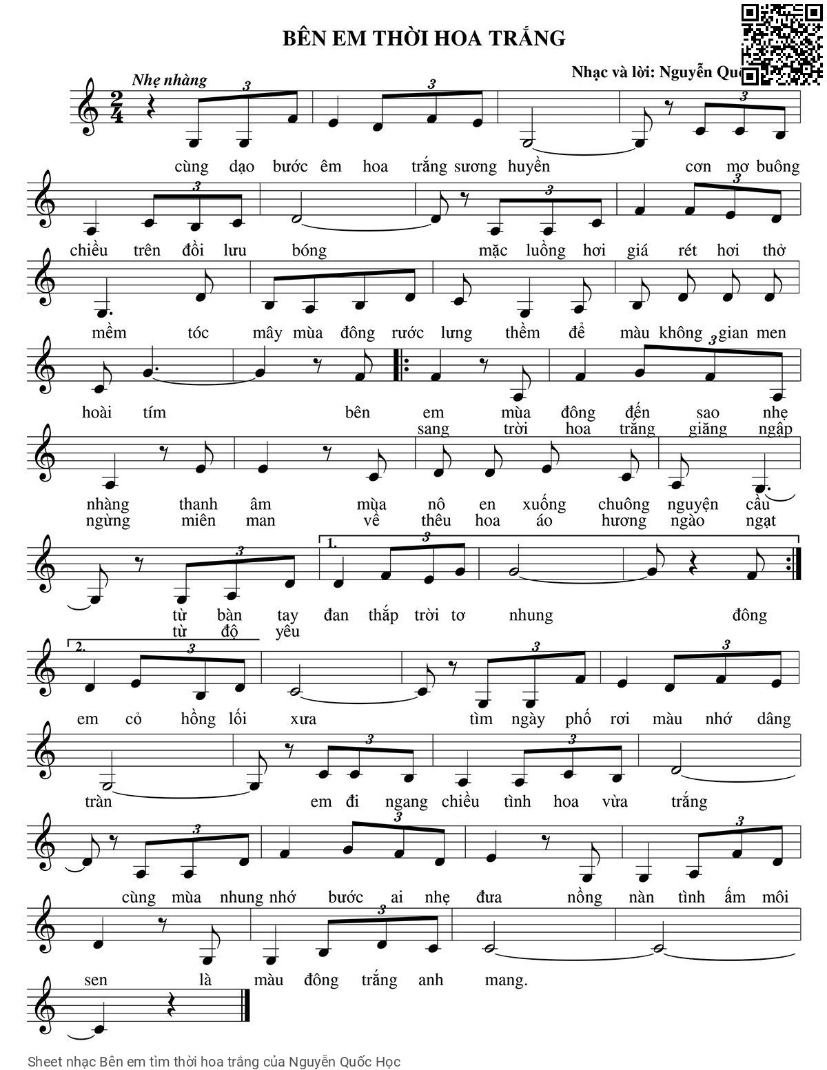Nguyễn Quốc Học Cùng dạo bước em hoa trắng sương huyền [PDF] [Sheet] [Lyrics] [Mp4/Midi]