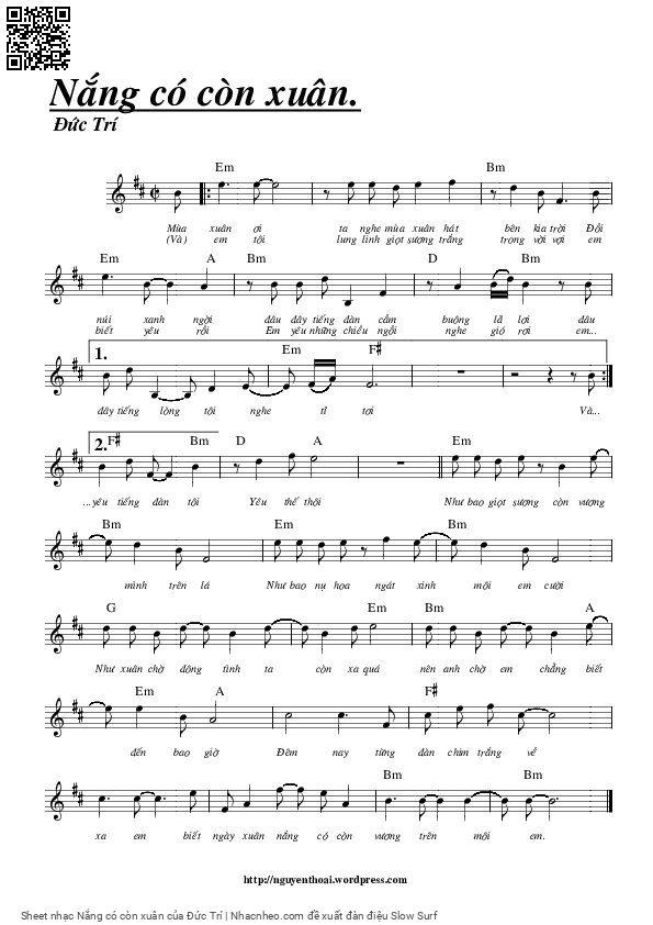 Đức Trí Mùa xuân ơi Ta nghe mùa xuân hát bên kia trời [PDF] [Sheet] [Lyrics] [Mp4/Midi] [Story and comment]