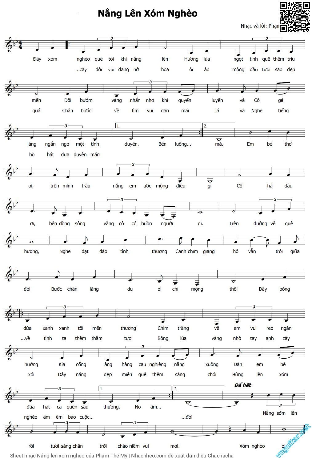 Phạm Thế Mỹ Đây xóm nghèo quê tôi khi nắng lên Hương lúa ngọt tình quê thêm trìu mến [PDF] [Sheet] [Lyrics] [Mp4/Midi]