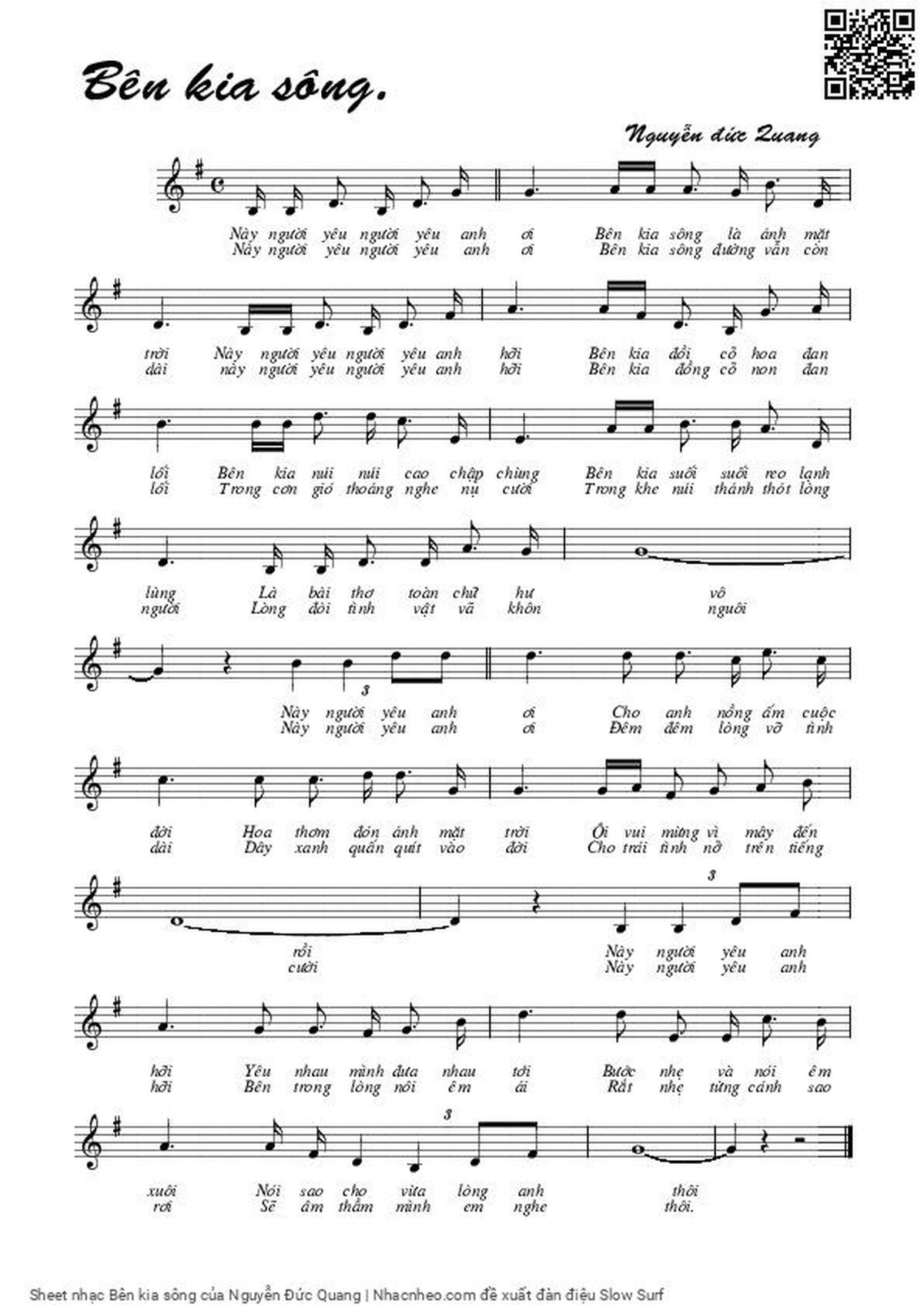 The Videos/audios Bên kia sông by Nguyễn Đức Quang were embed from Youtube, Musescore or the other 3rd links. Videos are subject to 3rd's copyright control and may be removed by YouTube's copyright rules and 3rd's policies or maybe included advertisements. If you cannot access to these songs, this mean that have been removed.