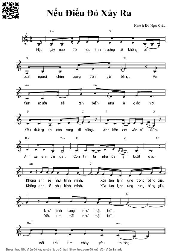 The Videos/audios Nếu điều đó xảy ra by Ngọc Châu were embed from Youtube, Musescore or the other 3rd links. Videos are subject to 3rd's copyright control and may be removed by YouTube's copyright rules and 3rd's policies or maybe included advertisements. If you cannot access to these songs, this mean that have been removed.