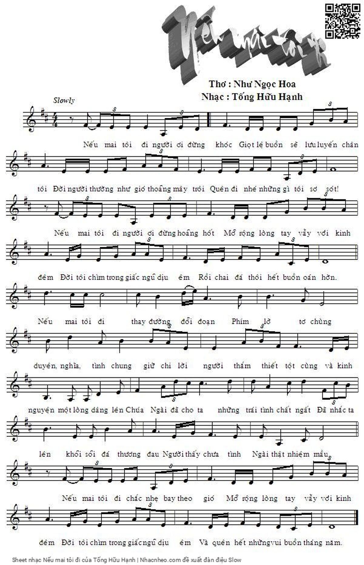 Tống Hữu Hạnh Nếu mai tôi đi người ơi đừng khóc Giọt lệ buồn sẽ lưu luyến chân tôi [PDF] [Sheet] [Lyrics] [Mp4/Midi]
