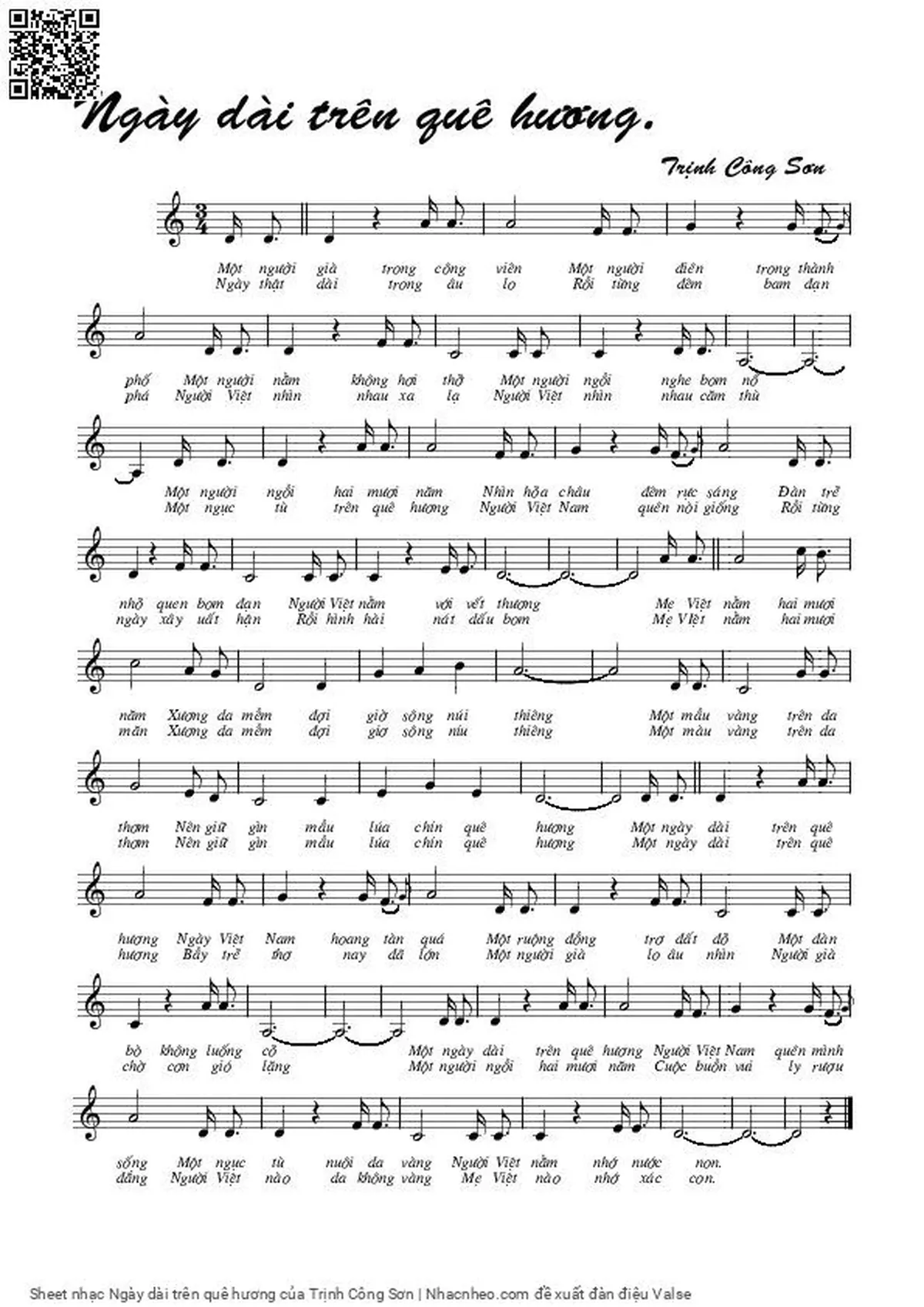 The Videos/audios Ngày dài trên quê hương by Trịnh Công Sơn were embed from Youtube, Musescore or the other 3rd links. Videos are subject to 3rd's copyright control and may be removed by YouTube's copyright rules and 3rd's policies or maybe included advertisements. If you cannot access to these songs, this mean that have been removed.