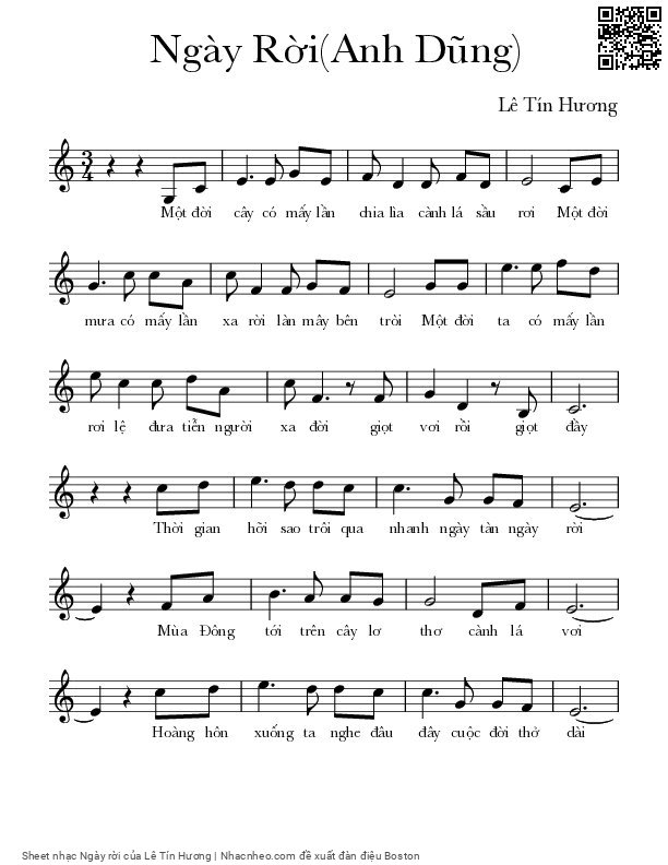 Lê Tín Hương Một đời cây có mấy lần chia lìa cành lá sầu rơi [PDF] [Sheet] [Lyrics] [Mp4/Midi]