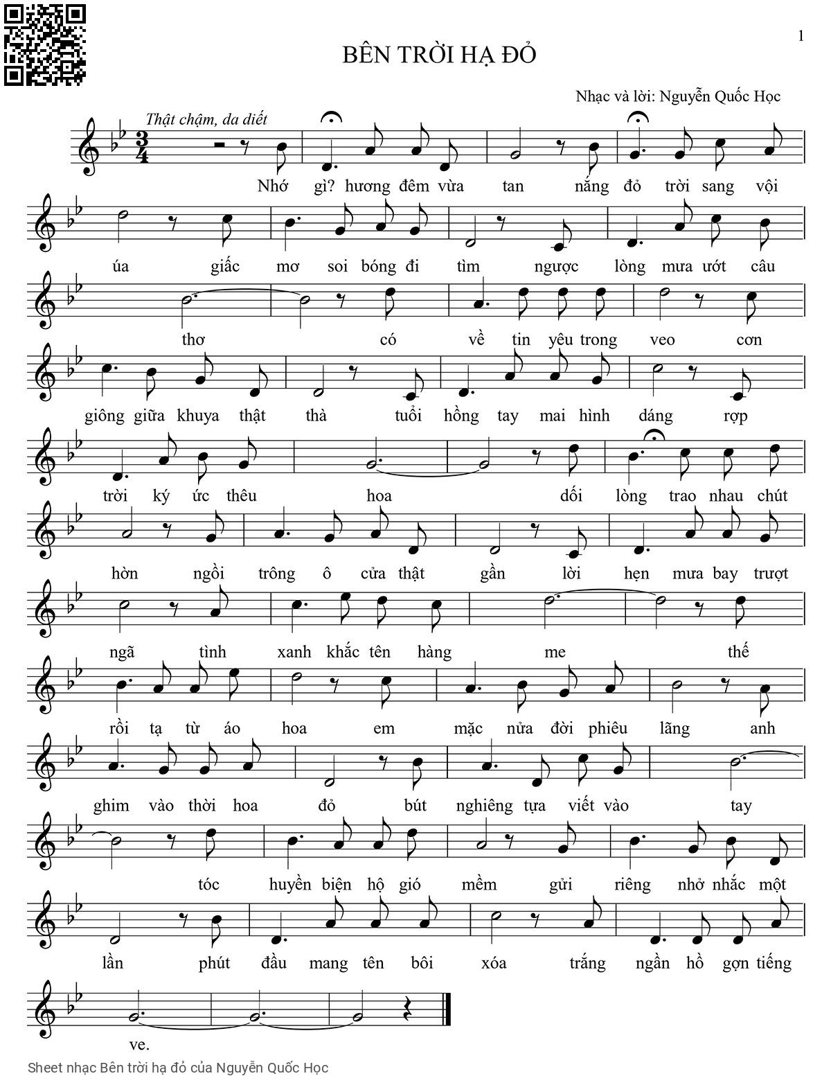 Nguyễn Quốc Học Nhớ gì hương đêm vừa tan Nắng đỏ trời sang gội úa [PDF] [Sheet] [Lyrics] [Mp4/Midi]