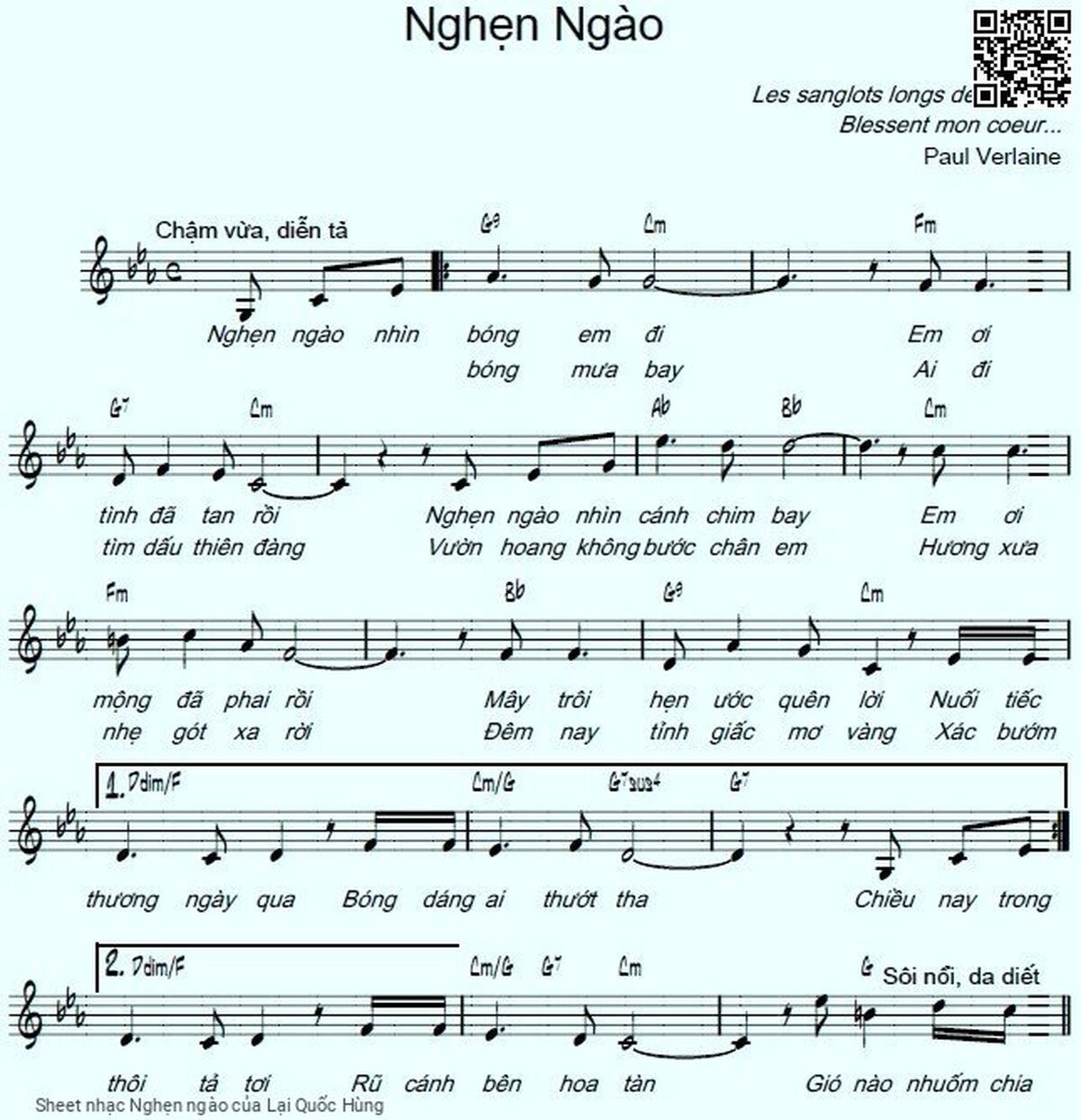 Lại Quốc Hùng Nghẹn ngào nhìn bóng em đi Em ơi tình đã tan rồi [PDF] [Sheet] [Lyrics] [Mp4/Midi]