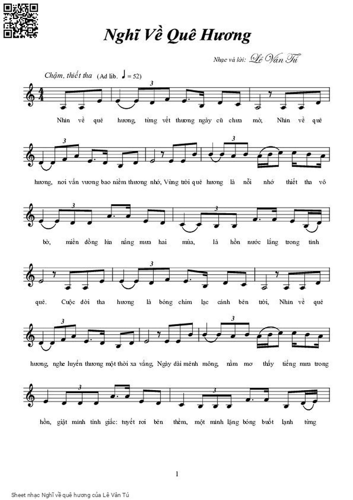 Lê Vân Tú Nhìn về quê hương từng vết thương ngày cũ chưa mờ [PDF] [Sheet] [Lyrics] [Mp4/Midi]