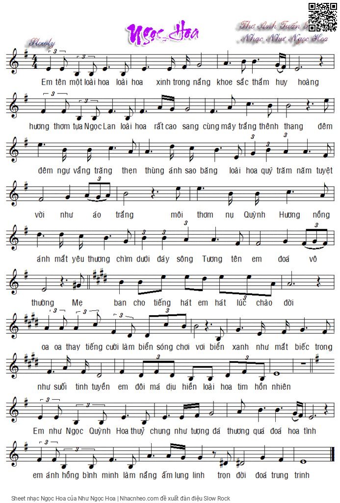Như Ngọc Hoa Em tên một loài hoa Loài hoa xinh trong nắng [PDF] [Sheet] [Lyrics] [Mp4/Midi]