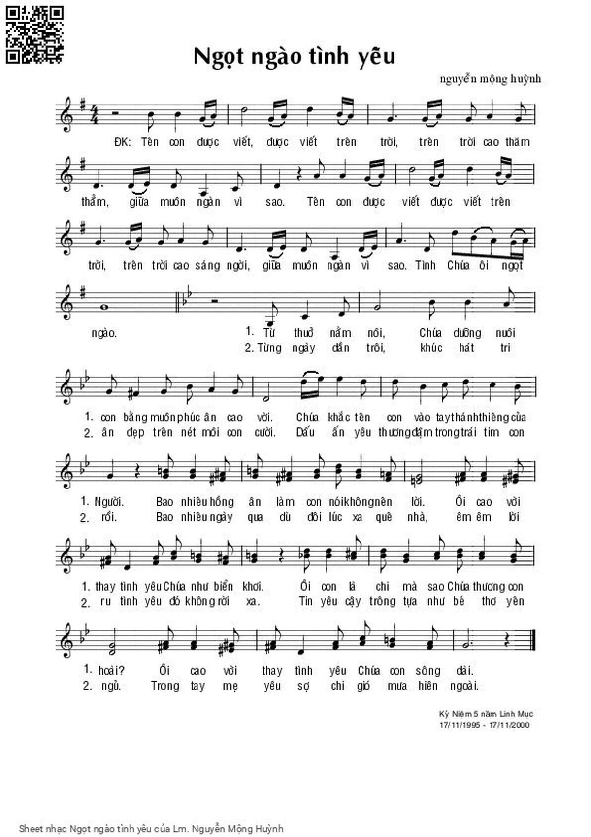 Lm. Nguyễn Mộng Huỳnh Tên con được viết được viết trên trời [PDF] [Sheet] [Lyrics] [Mp4/Midi]
